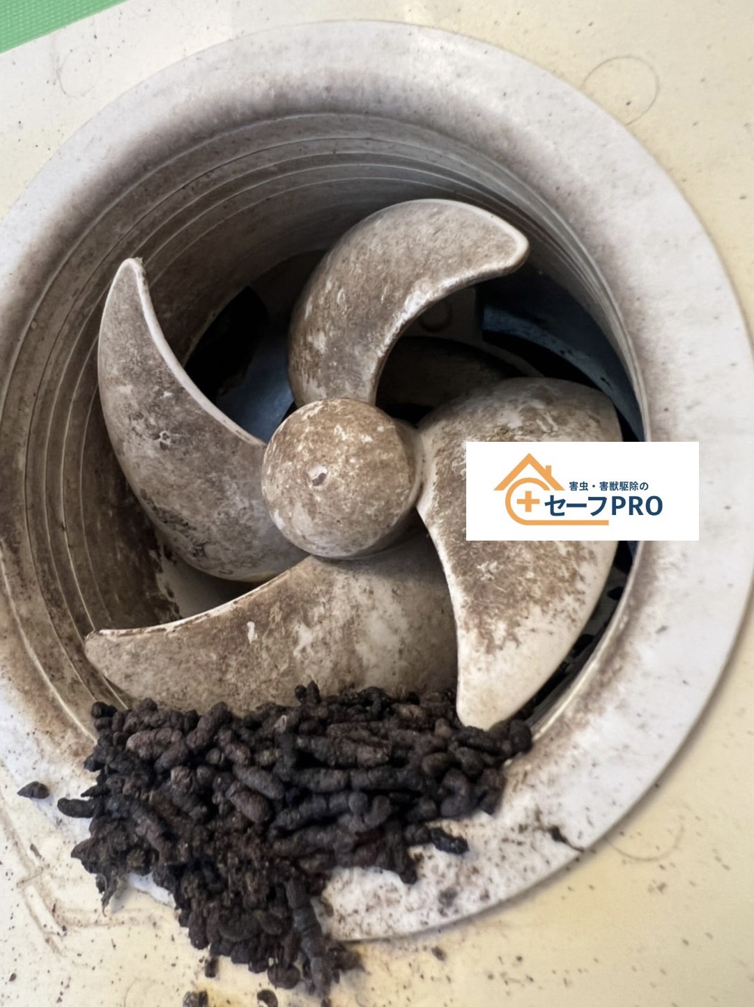実際にコウモリが出てきた換気口を外してみるとそこには糞が山盛りになっており長年住み着いているような状況でございました。
