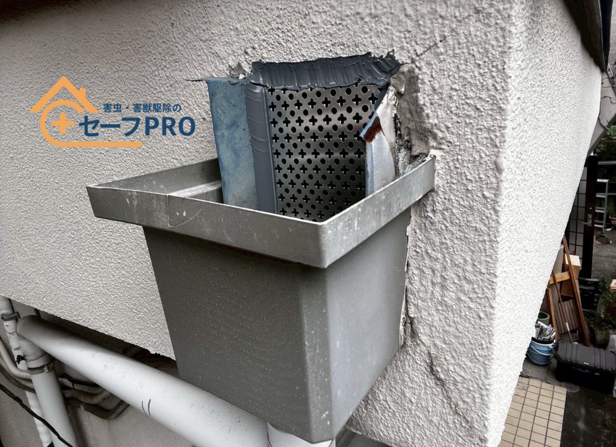 侵入口を探すと、前の業者が塞いだ箇所が壊されていました。