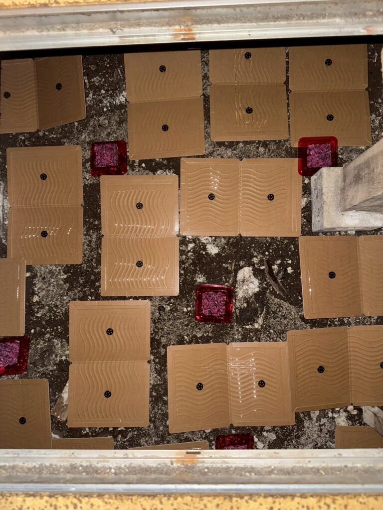 ・粘着トラップ200枚と殺鼠剤30個を設置