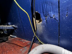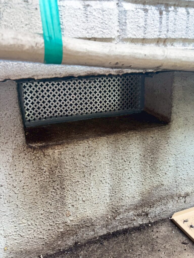 調査にお伺いし建物外部を見ていくと明らかな侵入口の塞ぎ忘れがありました。これは被害が止まらないのも納得です。