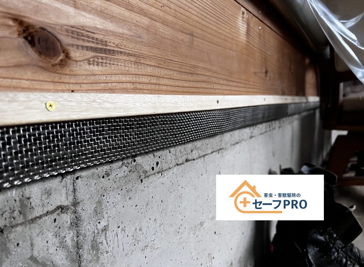 少しでも侵入口を残すと再発してしまう為、水切りの隙間や防鼠パッキンがずれている箇所など徹底的に作業させていただきました。